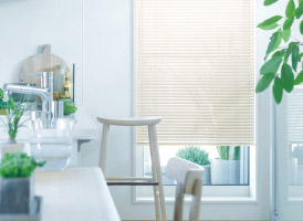 羽根の開閉や回転、素材により、明るさや採光の調節が可能です。木製、アルミ製、布製があり、窓のサイズやお求めの機能にあわせて、横型縦型をお選びいただけます。